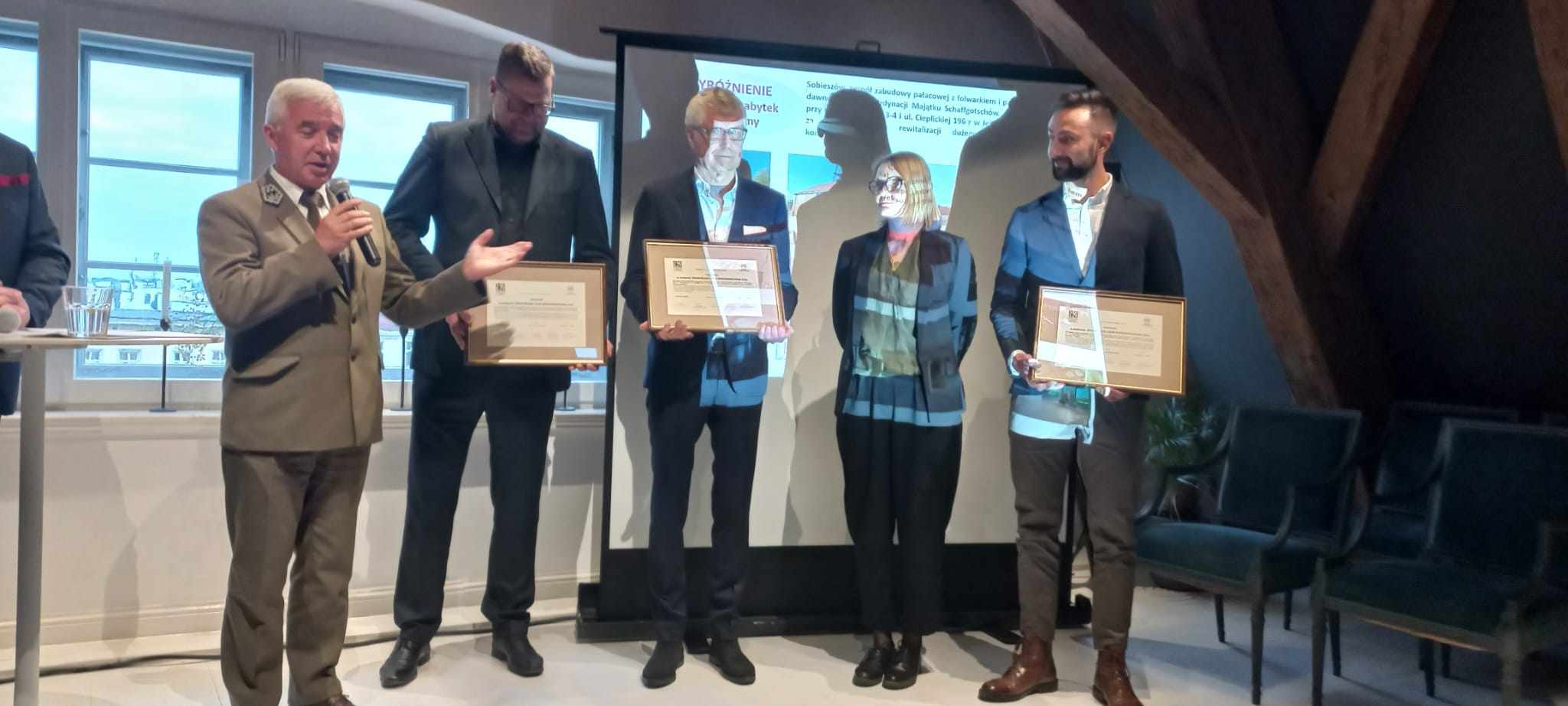 Z radością i satysfakcją odebraliśmy Dolnośląski Laur Konserwatorski 2023 w kategorii zabytek nieruchomy przyznany przez Stowarzyszenie Konserwatorów Zabytków Oddział Dolnośląski dla zespołu zabudowy pałacowej z folwarkiem i parkiem dawnego Urzędu Ordynacji Majątku Schaffgotschów w Sobieszowie za przeprowadzenie rewitalizacji dużego barokowego kompleksu zabytków. Oprócz przedstawicieli Karkonoskiego Parku Narodowego – dyrektora Andrzeja Raja i głównych specjalistów Justyny Wierzchuckiej-Sajór i Daniela Pindelskiego wyróżnienie odebrali także pan Krzysztof Frąckowiak, główny projektant oraz Wiktor Koselak i Paulina Grzywacz z firmy Pre-Fabrykat, odpowiedzialni za większość prac remontowych.