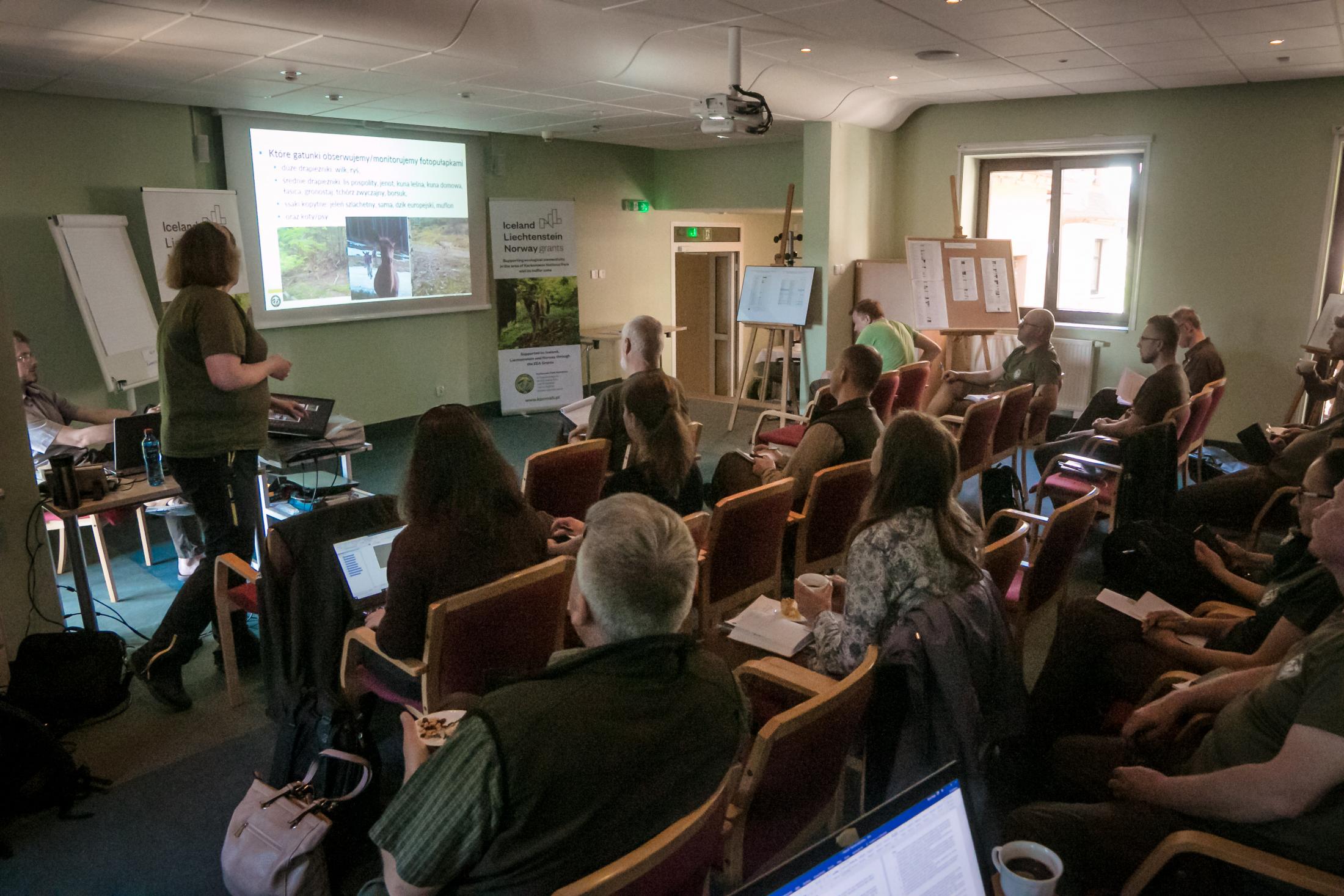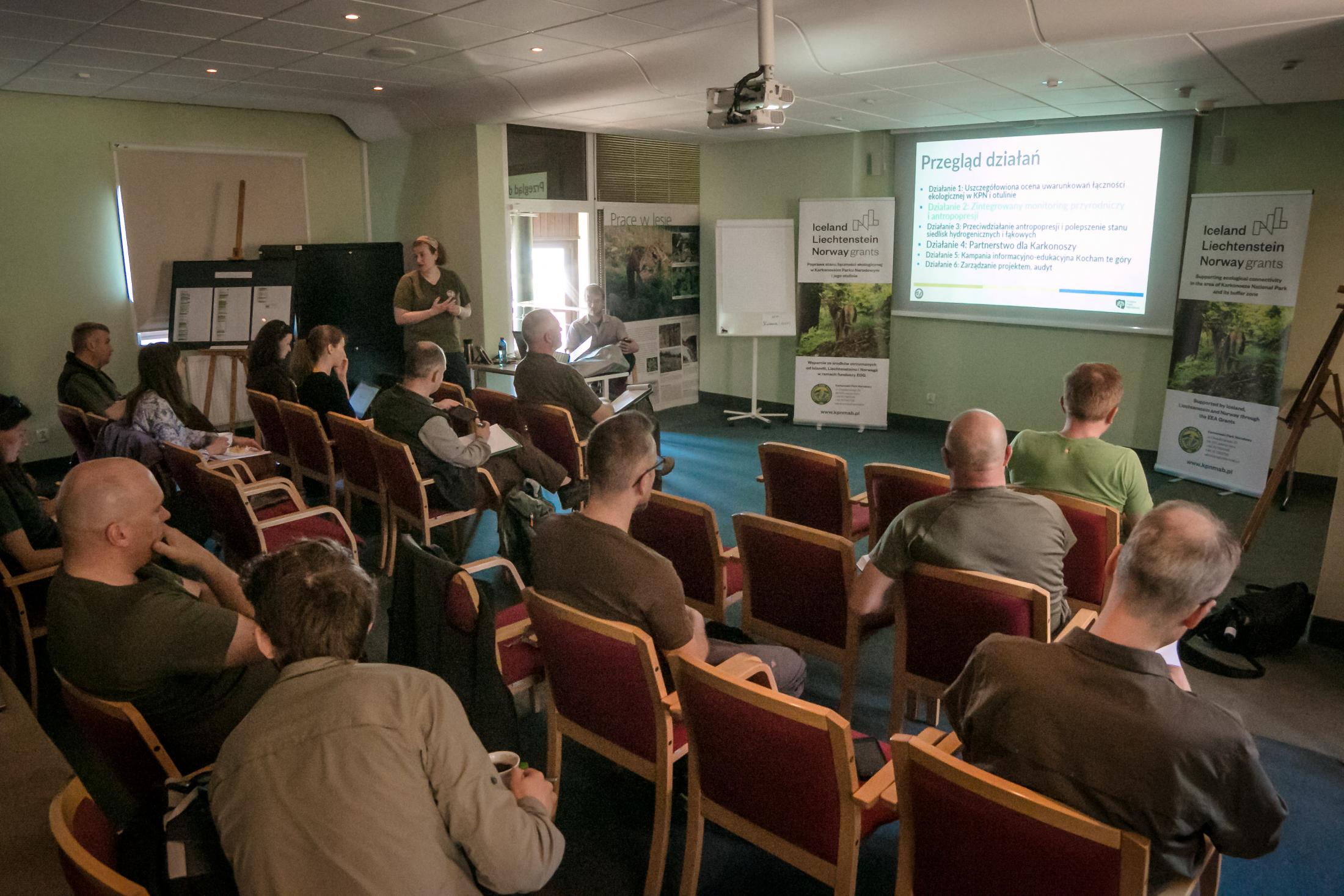 Wdrożenie systemu monitoringu wykorzystania przestrzeni przez zwierzęta z zastosowaniem fotopułapek – to jedno z najważniejszych zadań w ramach realizowanego przez Karkonoski Park Narodowy projektu pn.: „Poprawa stanu łączności ekologicznej w KPN i jego otulinie”. Zakup i montaż specjalistycznego sprzętu do prowadzenia monitoringu oraz towarzyszącego mu systemu informatycznego pozwalającego na zarządzanie, integrację i analizowanie gromadzonych w trakcie obserwacji danych oraz zastosowanie technik sztucznej inteligencji umożliwi zwiększenie trafności interpretacji informacji o obecności i przemieszczaniu się zwierząt. Te szczegółowe dane przyrodnicze znakomicie uzupełnią wiedzę na temat funkcjonowania korytarzy ekologicznych parku. O stosowaniu nowoczesnych rozwiązań technicznych służących monitoringowi przyrodniczemu rozmawiano w czasie konferencji, która odbyła się 19 i 20 maja br. w Karkonoskim Centrum Edukacji Ekologicznej w Szklarskiej Porębie. Opowiadał o tym dr Jakub Bubnicki, szef Open Science Conservation Fund, pracownik Instytutu Biologii Ssaków PAN w Białowieży.